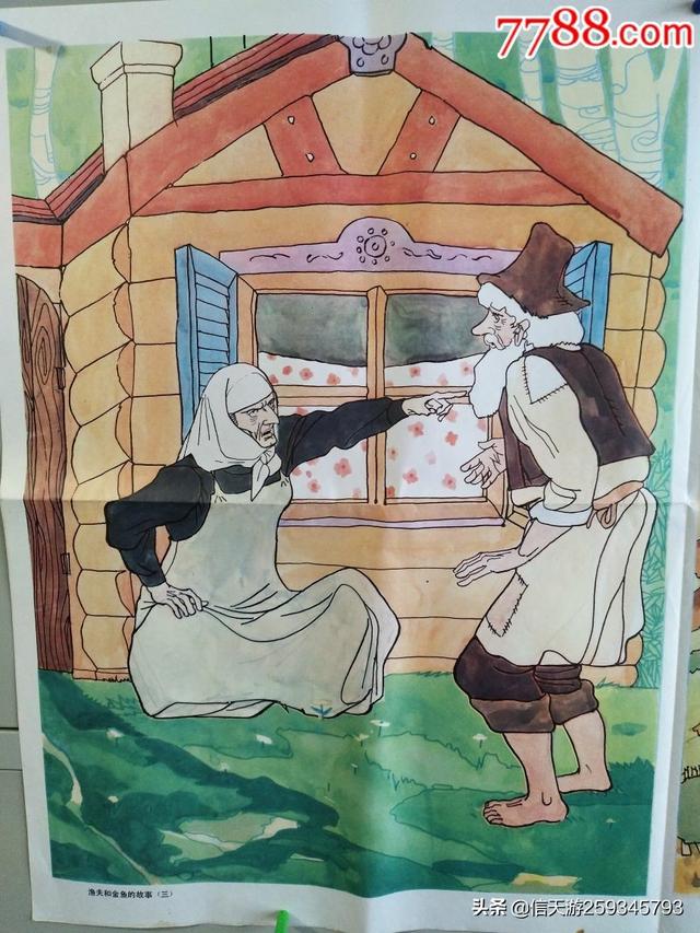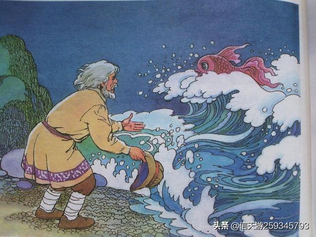 故事以渔夫、老太婆、金鱼为主人公。以老太婆一次又一次贪得无厌的索求为主线,由始到终贯穿整个故事。
