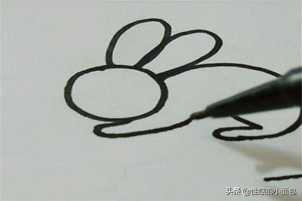 3、接着画上身体,是一只蹲着的小兔子,观察腿的变化