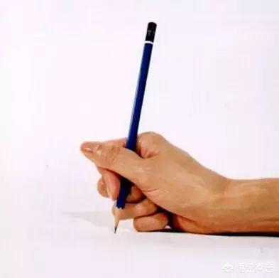 4、靠:笔杆向右后方倾斜,靠在虎口食指指关节的位置上。