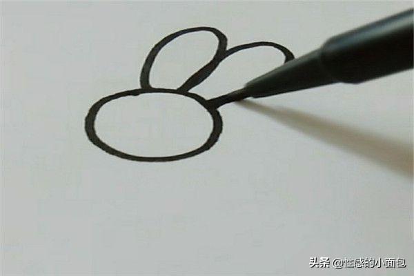 2、在连接小兔子圆圆的头,不能画得太大