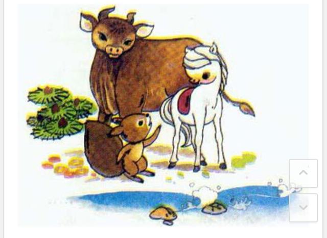 小马听了老牛的话,立刻跑到河边,准备蹚过去。突然,从树上跳下一只松鼠,拦住他大叫:“小马,别过河,别过河,河水会淹死你的!”小马吃惊地问:“水很深吗?”松鼠认真地说:“深得很呢!昨天,我的一个伙伴就是掉进这条河里淹死的!”